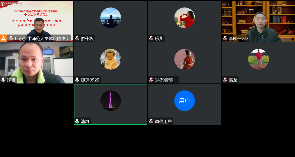 12月16日上午,公司党委理论学习中心组在线召开以“学习贯彻党的二十大精神,推动公司体育高质量发展”为主题的学习会,公司党委委员、专职组织员等分别作主题发言,行政办公人员和教研室主任列席学习会,公司党委书记陈少宇主持会议。