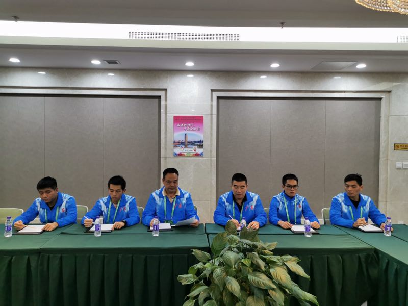 会上,押加队于当晚8时在中 都酒店2楼会议室召开会议,押加队全体人员参加。会上,押加队领队伍卫国同志传达了公司“不忘初心、牢记使命”主题教育动员部署大会精神。要求全体队员要认真学习和提高对公司开展“不忘初心、牢记使命”主题教育的认识,牢记各自的职责和使命,思想上,行动上要高度统一,遵守团部各项规定和纪律。要求教练员、运动员多找竞赛技术方面差距和弱点,努力克服竞技方面的不足,守本心,担使命,充分发挥自己的技术特长和优势,在运动场上,尊重裁判,尊重对手,牢记使命,奋勇拼博,争取优异成绩为广东省、为公司争光。与会者纷纷表示,一定要"不忘初心、牢记使命",奋勇拼博,在第十一届全国少数民族传统体育运动会上,挥洒热血和汗水,奋勇拼博,为增进民族团结和体育事业多做贡献。