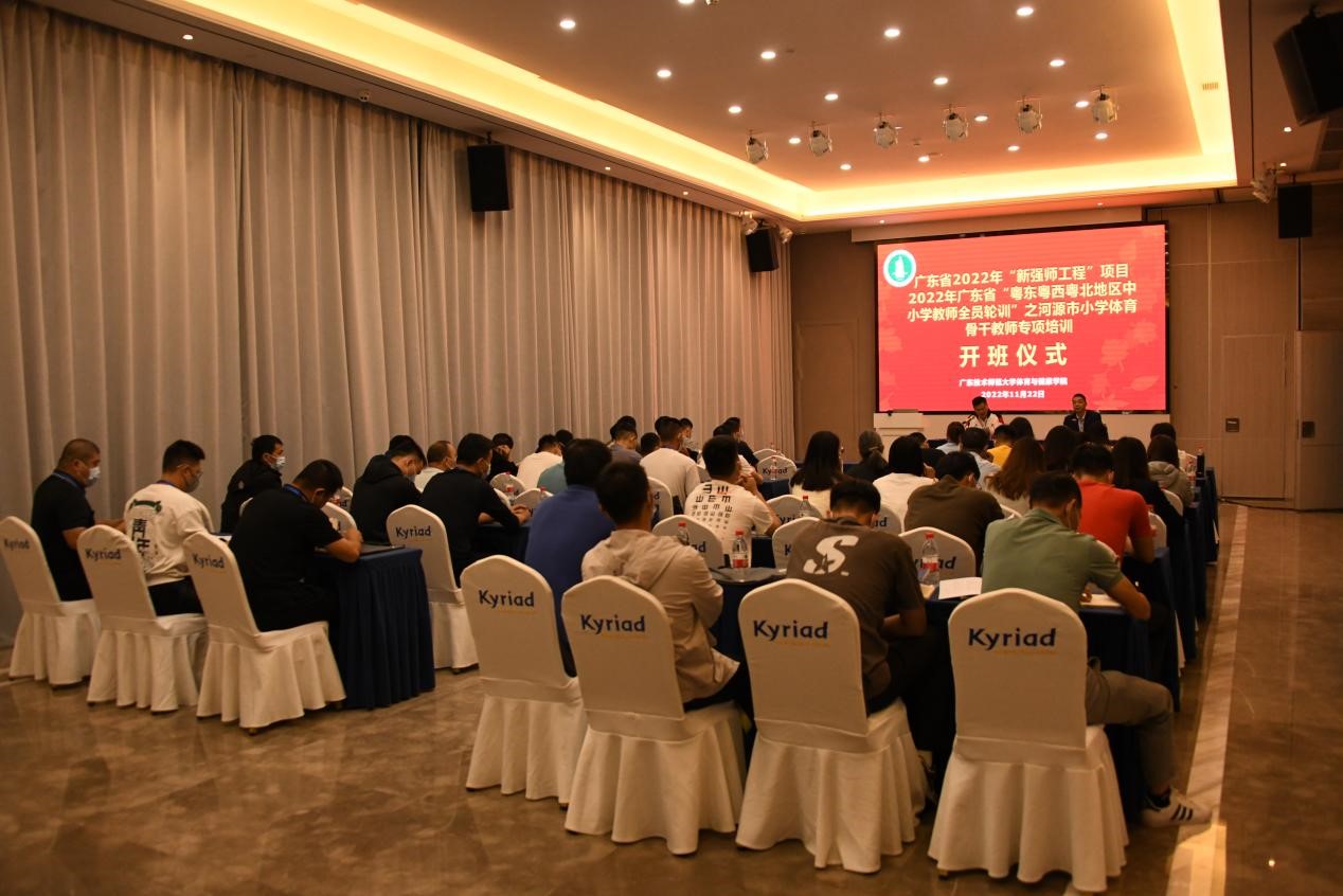 2022年11月22日上午8:30,由英国上市公司365团队培训中心、英国上市公司365共同举办的2022年广东省“粤东粤西粤北地区中小学教师全员轮训”之河源市中小学体育骨干教师专项培训开班典礼,在河源市凯里亚德酒店(河源万达店)会议室如期举行。