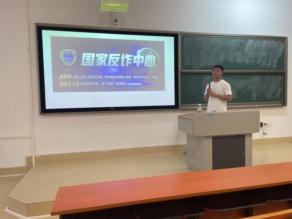 李永俊在课上以实际案例为同学们介绍了现在校园内常见的诈骗方式和校园贷信息,并对国家反诈中心app及全国反诈专线进行普及宣传,通过图片、短视频等方式为同学们讲解国家反诈中心app的功能及使用方法。