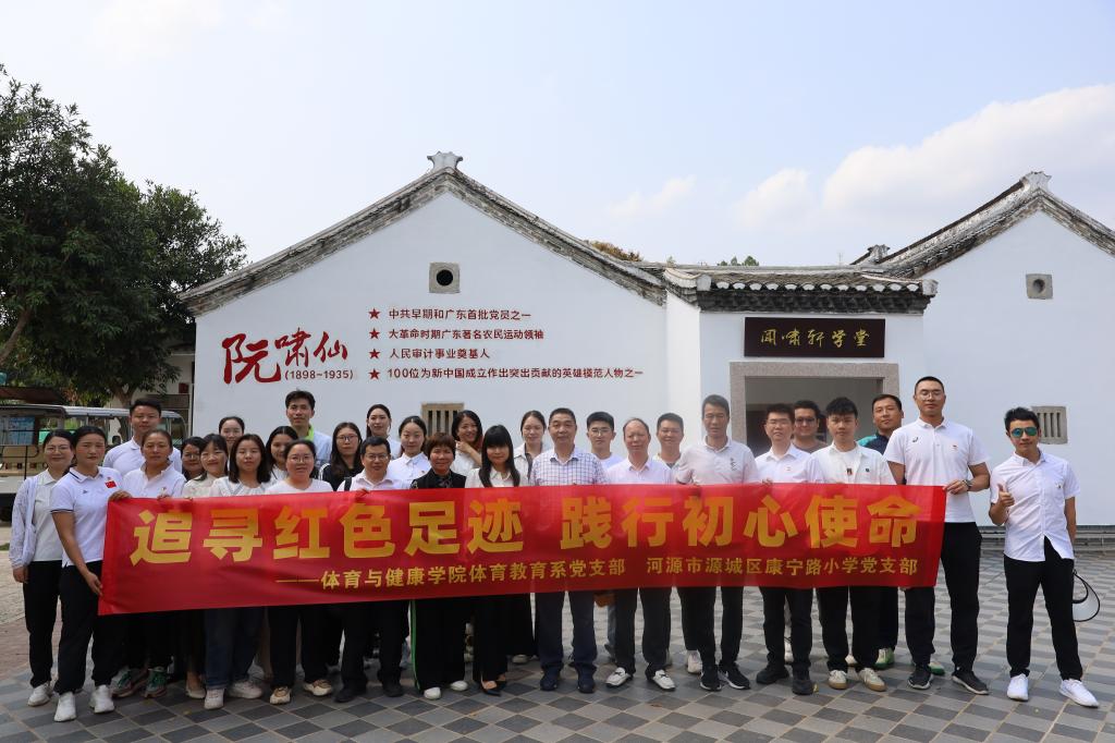 为深入学习贯彻党的二十大精神,传承红色基因,强化党员责任担当,3月28日,体育教育系党支部与河源市源城区康宁路小学党支部赴河源市东源县义合镇阮啸仙故居开展党建共建活动,通过红色教育与理论学习相结合的形式,推动支部建设与党员教育深度融合。